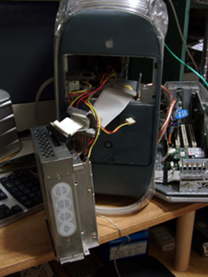 分解。 分解手順が解らない方はこちらへ。 DVDドライブのIDEケーブルと電源ケーブルを抜いておいてください。 |