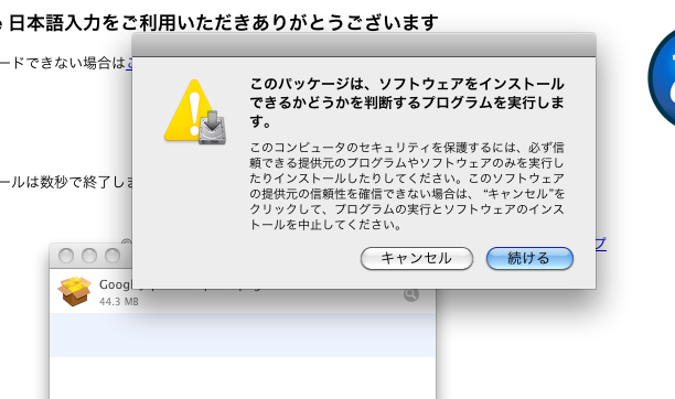 こんな画面が出てくるが”続ける”を押す(クリックすると拡大)